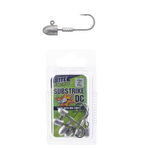 6 Pack of 1/6oz Size 1 Bite Science Substrike DC Jigheads with BKK Hooks