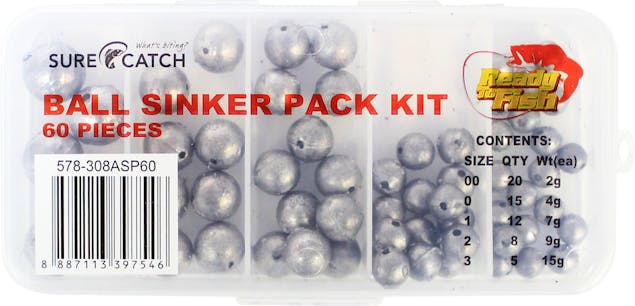 Surecatch Ball Sinkers - 60 Piece Bulk Pack - Super Value 5 Popular Sizes