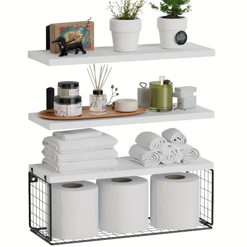 NNETM Elevate your bathroom decor with these sleek wood floating shelves