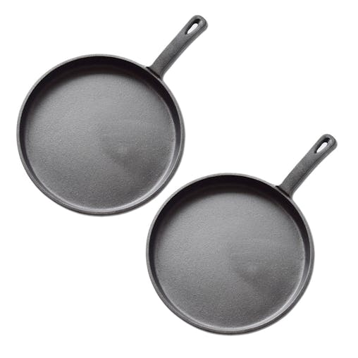 SOGA 2X 26cm Round Cast Iron Frying Pan Skillet Griddle Sizzle Platter
