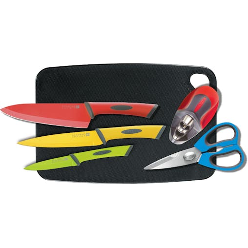 Scanpan Spectrum Colour 6pc Kitchen Knife Set Chopping Board Shears Sharpener 18877
