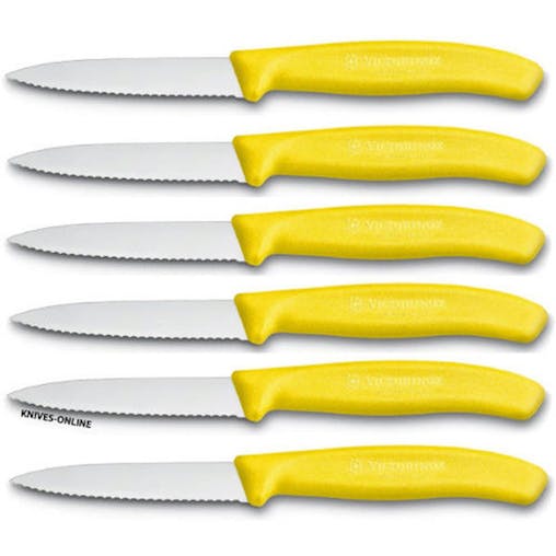Victorinox Paring Knife Serrated Edge Pointed Tip 8cm Yellow Set x 6 Knives