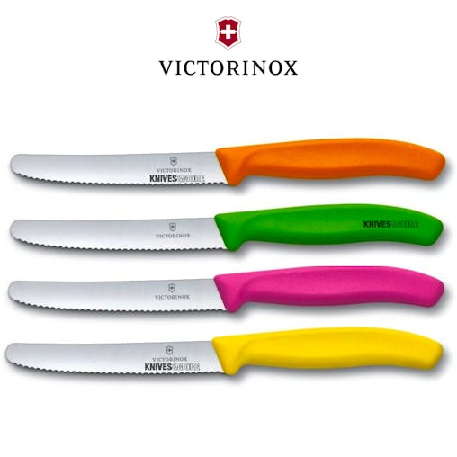 New Victorinox Steak & Tomato 11Cm Knives Pistol Grip Colourful Set X 4 Knife