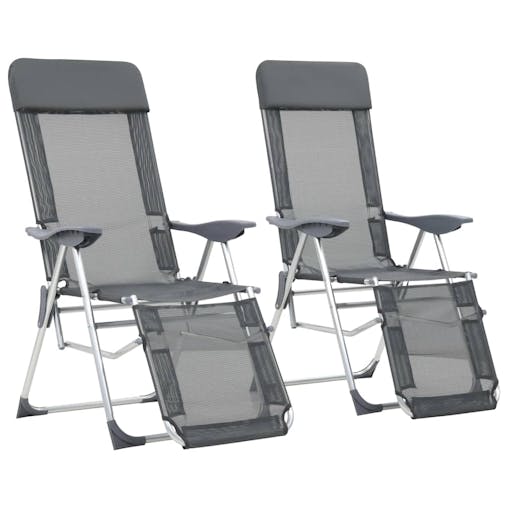 NNEVL Folding Camping Chairs with Footrests 2 pcs Grey Textilene