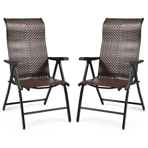 NNECW 2 Piece Outdoor Patio Rattan Folding Chair with Adjustable High Backrest for Garden Balcony