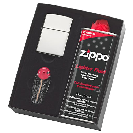New High Polished Chrome Lighter Gift Set With Fluid and Flints