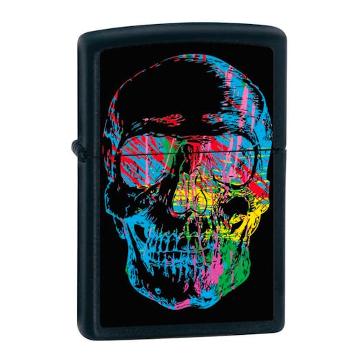 New Zippo Matte Black Colourful X-Ray Skull Windproof Lighter