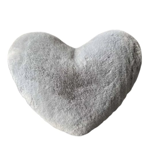NNEOBA Heart Shaped Faux Bunny Fur Pillow (Grey)