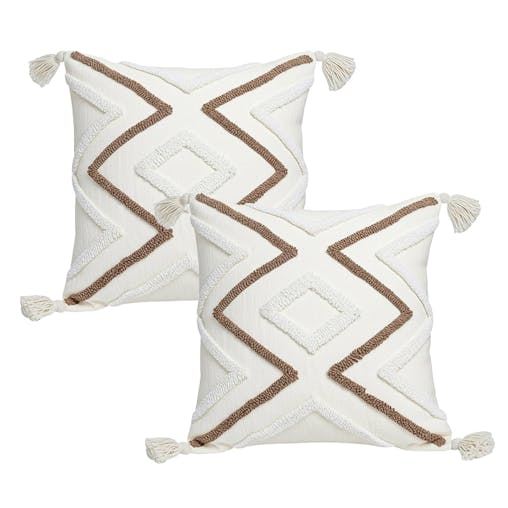 SOGA 2X Boho Tufted Cushion 45cm Tassel White Brown Geometric Decorative Throw Pillow