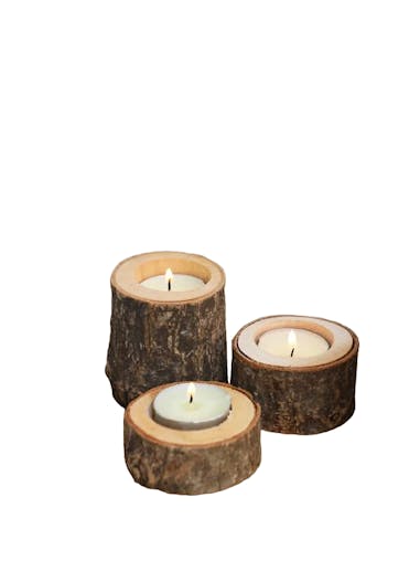 NNESN Retro Wood-Colored Wooden Candlestick Set - Set of 3 Multicolored Log Design Candle Holders