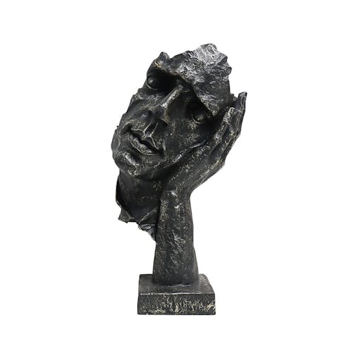 SOGA 29cm Black Resin Sculpture Resting Face on Hand Design Modern Art for Home Decor