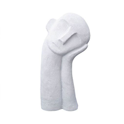SOGA 38cm White Minimalist Head Resin Sculpture with Hand at Side and Linear Texture for Home Decor