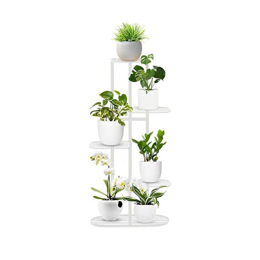 SOGA 5 Tier 6 Pots White Metal Plant Rack Flowerpot Storage Display Stand Holder Home Garden Decor