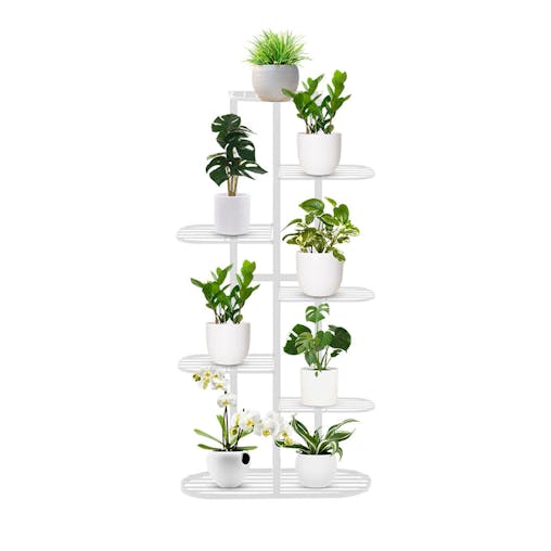 SOGA 7 Tier 8 Pots White Metal Plant Rack Flowerpot Storage Display Stand Holder Home Garden Decor
