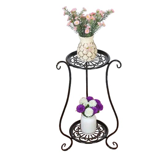 SOGA 2 Layer 50cm Gold Metal Plant Stand Flower Pot Holder Corner Shelving Rack Indoor Display
