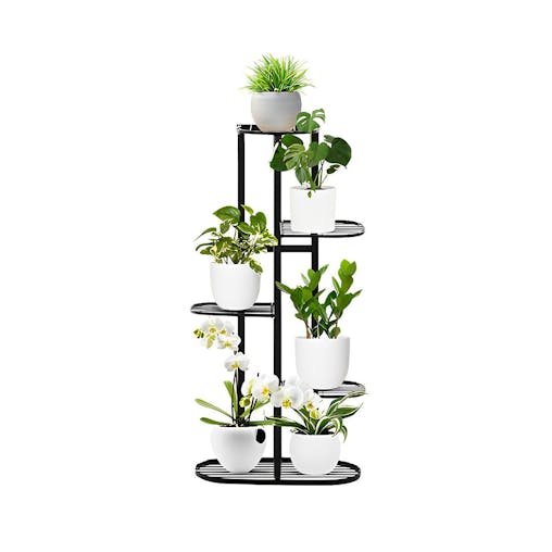 SOGA 5 Tier 6 Pots Black Metal Plant Rack Flowerpot Storage Display Stand Holder Home Garden Decor