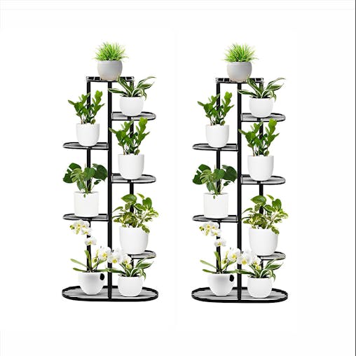 SOGA 2X 7 Tier Black Metal Plant Rack for 8 Pots Home Garden
