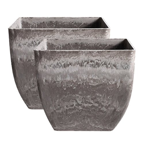 SOGA 2X 27cm Rock Grey Square Resin Plant Flower Pot in Cement Pattern Planter Cachepot for Indoor Home Office