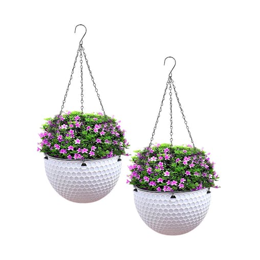SOGA 2X White Large Hanging Resin Flower Pot Self Watering Basket Planter