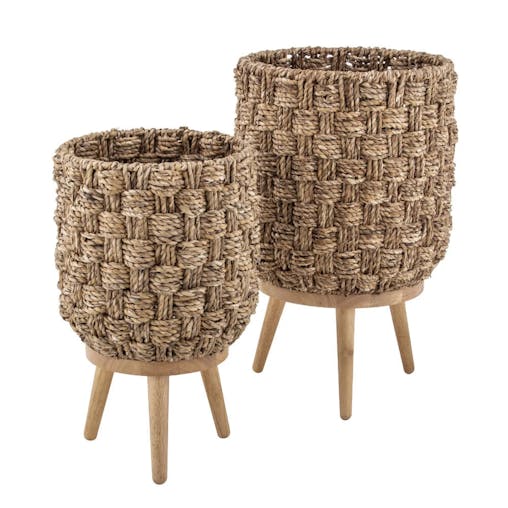 Amalfi Barbados Planter Pot on Stand 2pc Set Natural