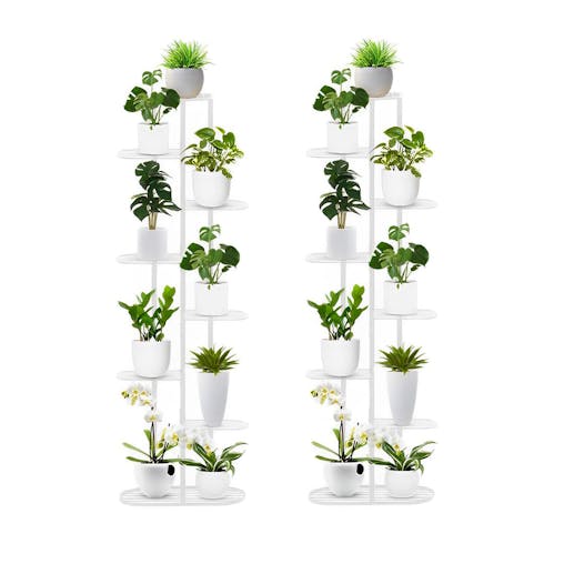 SOGA 2-Pack 8-Tier 9-Pot White Metal Plant Rack Flowerpot Display Stand