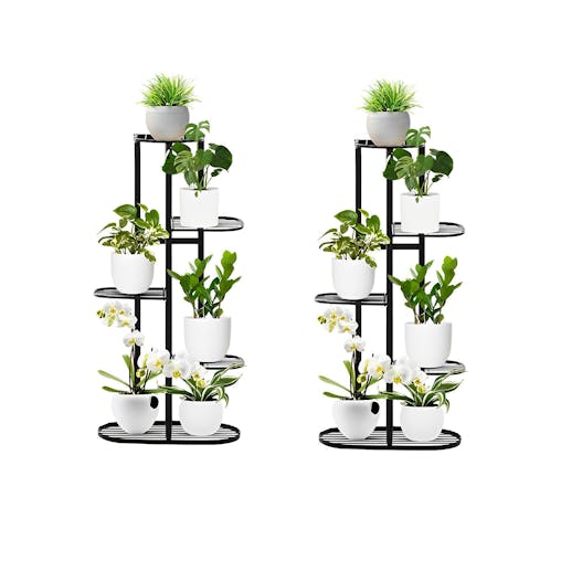 SOGA 2X 5 Tier 6 Pots Black Metal Plant Rack Flowerpot Storage Display Stand Holder Home Garden Decor