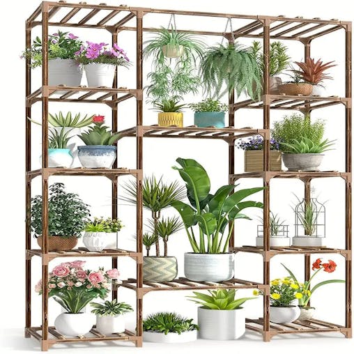 NNETM Multi-layer Wooden Plant Stand - 12 Tier Flower Pot Holder Rack