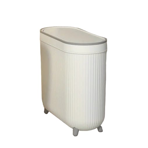 NNETM Compact Toilet Trash Can with Quiet Close Lid - White Gray Plastic, Space-Saving Design