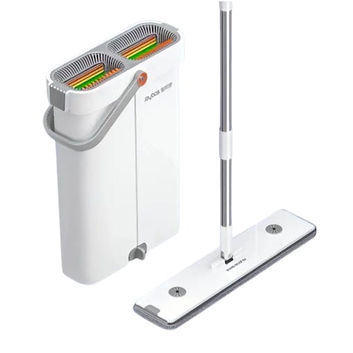 NNETM Flat Mop and Bucket Set with 3 Microfiber Pads