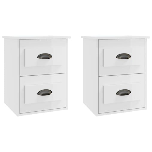 NNEVL Wall-mounted Bedside Cabinets 2 pcs High Gloss White 41.5x36x53cm