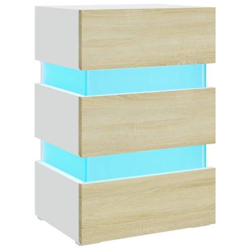 NNEVL LED Bedside Cabinet White and Sonoma Oak 45x35x67 cm Chipboard
