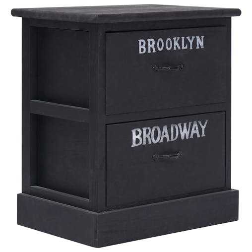 NNEVL Nightstand Black 38x28x45 cm Paulownia Wood