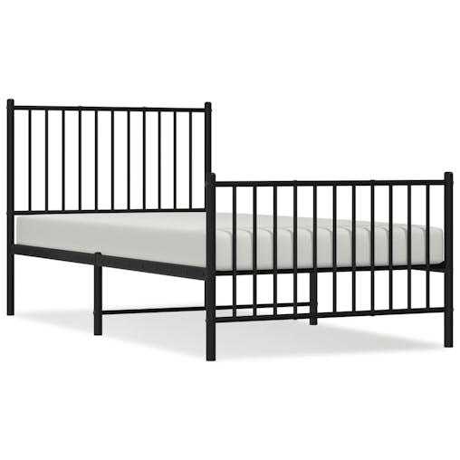 NNEVL Metal Bed Frame with Headboard and Footboard Black 92x187 cm Single