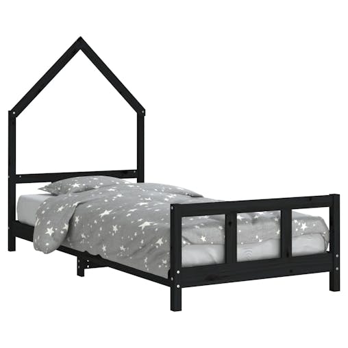 NNEVL Kids Bed Frame Black 92x187 cm Single Solid Wood Pine