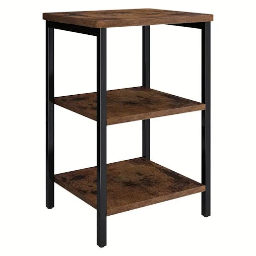 NNETM Retro Wooden 3-Layer Bedside Storage Rack Table