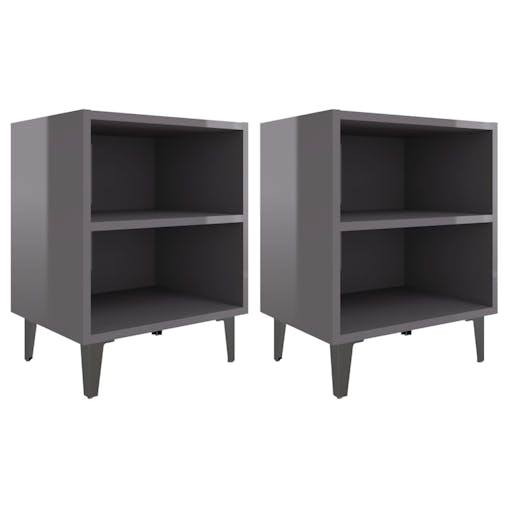 NNEVL Bed Cabinets with Metal Legs 2 pcs High Gloss Grey 40x30x50 cm