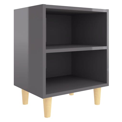 NNEVL Bed Cabinet with Solid Wood Legs High Gloss Grey 40x30x50 cm