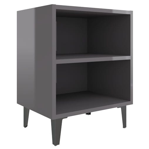 NNEVL Bed Cabinet with Metal Legs High Gloss Grey 40x30x50 cm