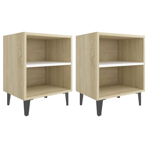 NNEVL Bed Cabinets Metal Legs 2 pcs Sonoma Oak and White 40x30x50 cm