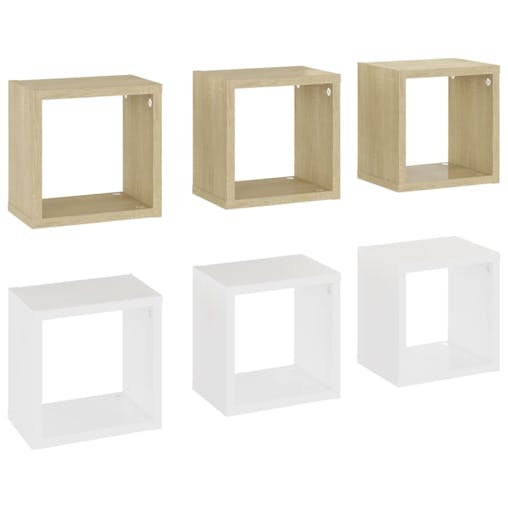NNEVL Wall Cube Shelves 6 pcs White and Sonoma Oak 22x15x22 cm