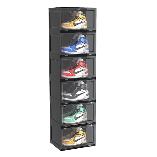 SOGA 6 Tier Black Portable Shoe Organiser Sneaker Footwear Folding Plastic Bin Stackable Storage Box with Magnetic Door