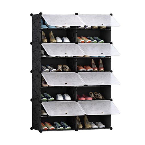 SOGA 2X 6 Tier Black Portable Shoe Organiser Sneaker Footwear Folding Plastic Bin Stackable Storage Box with Magnetic Door