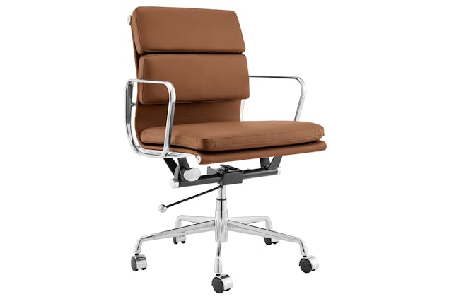 NNEKGE Replica Eames Group Standard Aluminium Padded Low Back Office Chair (Black Leather)
