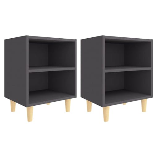 NNEVL Bed Cabinets with Solid Wood Legs 2 pcs Grey 40x30x50 cm