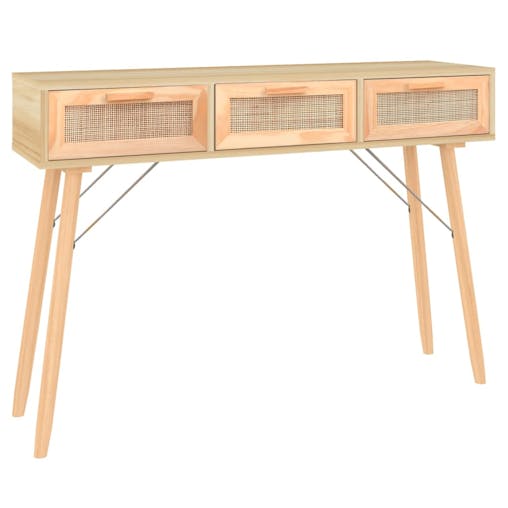 NNEVL Console Table Brown 105x30x75 cm Solid Wood Pine&Natural Rattan