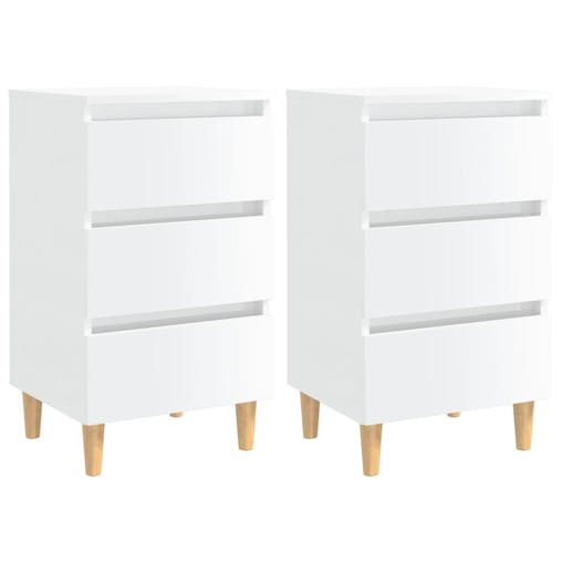 NNEVL Bed Cabinets & Wood Legs 2 pcs High Gloss White 40x35x69cm