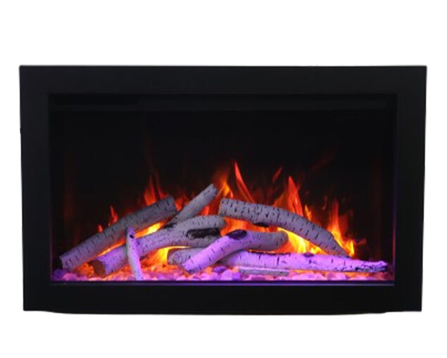 Amantii Smart 34" Clean face Electric Built-in with log and glass, black steel surround