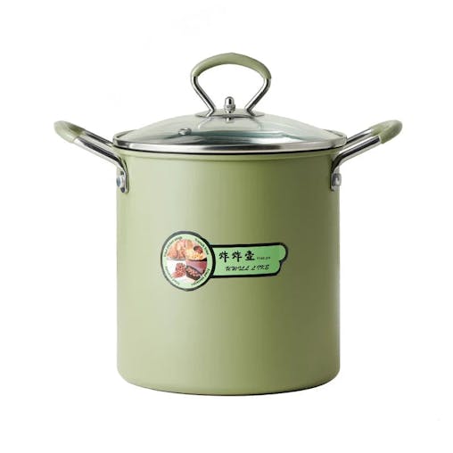 NNEOBA 3L Deep Fryer Pot with Basket Oil Strainer Mini Pasta Pot Green