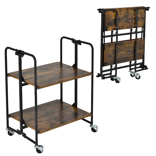 NNECW 2/3/4-Tier Industrial Folding Rolling Cart with Metal Frame for Kitchen-2-Tier