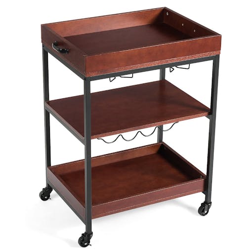 NNECW 3-Tier Kitchen Island Cart with Wine Rack & Glass Holders & Handle